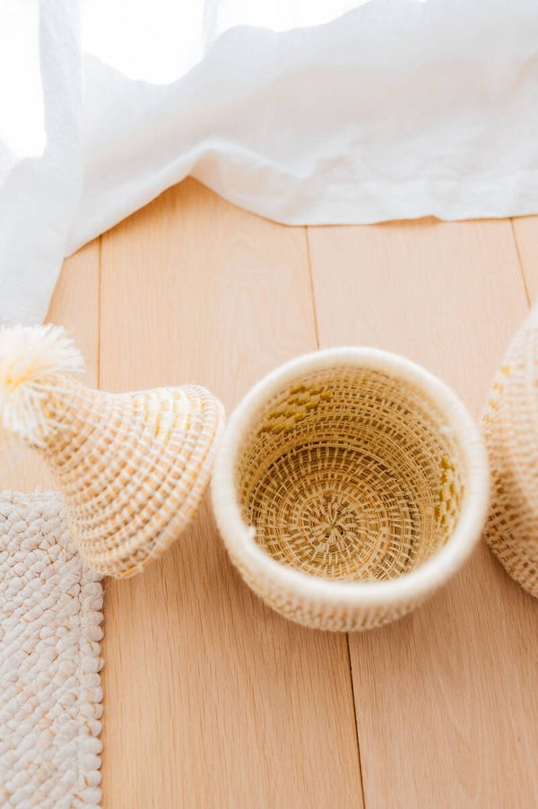 Ce panier en fibres naturelles et coton se distingue par son détail doré qui capte la lumière. Pensé avant tout comme un bel objet déco, il peut aussi accueillir et organiser vos petits essentiels du quotidien. Une création simple, fonctionnelle et pleine de charme.